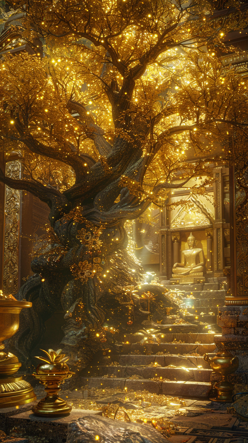 황금 나무 꿈은 예부터 금전운과 재물운이 결실을 맺는다는 뜻의 대표적인 길몽입니다.