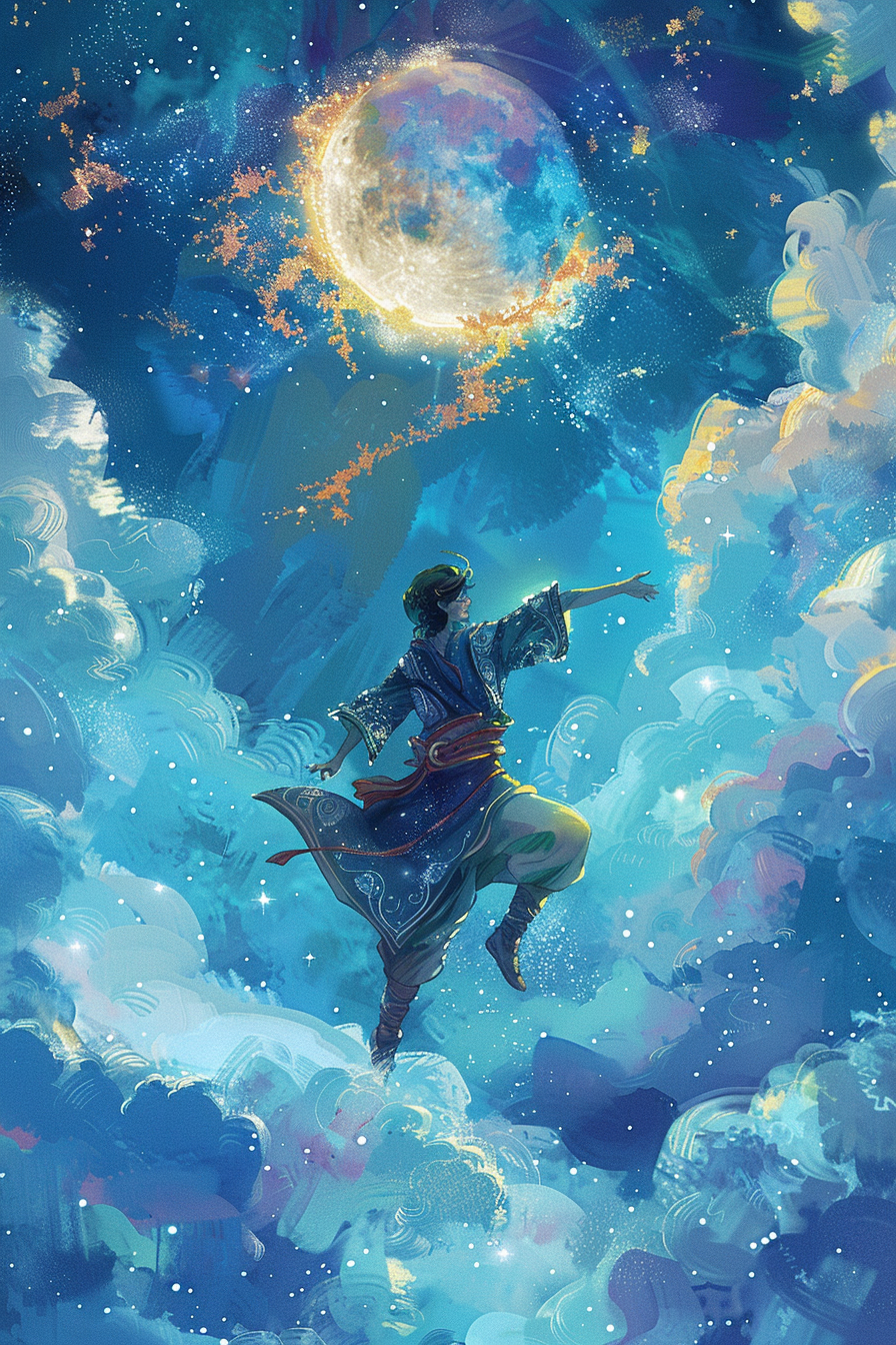 별빛 마법사는 특별한 능력과 창의력을 상징하며, 구름을 타고 춤추는 모습은 내가 금전적으로 새로운 놀라운 경험을 할 것임을 의미합니다.