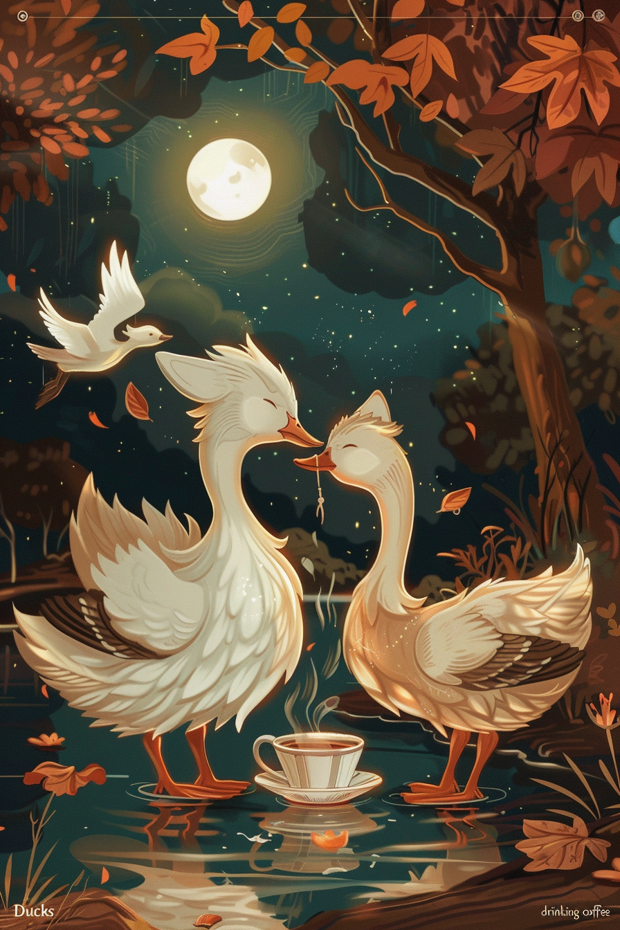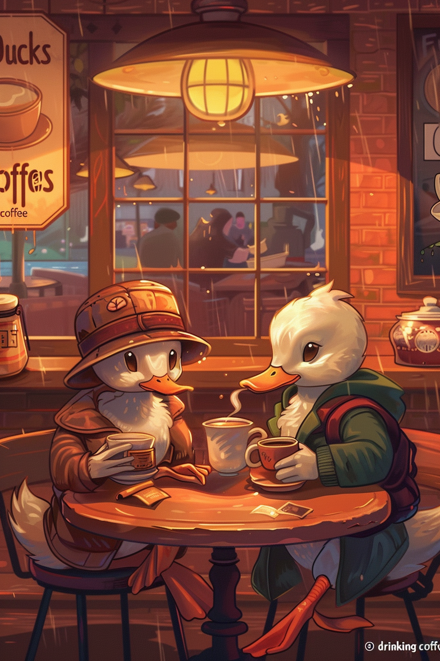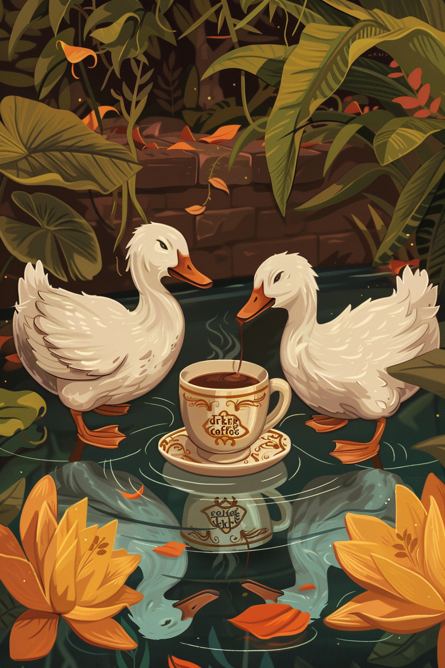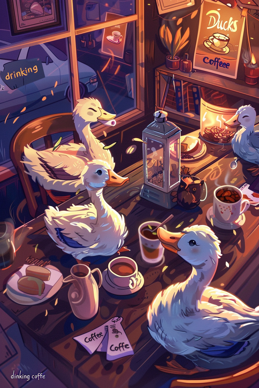 커피는 활기를 불어넣고, 오리는 풍요와 번영을 상징하므로, 이 꿈은 경제적 안정과 성장을 예고합니다.