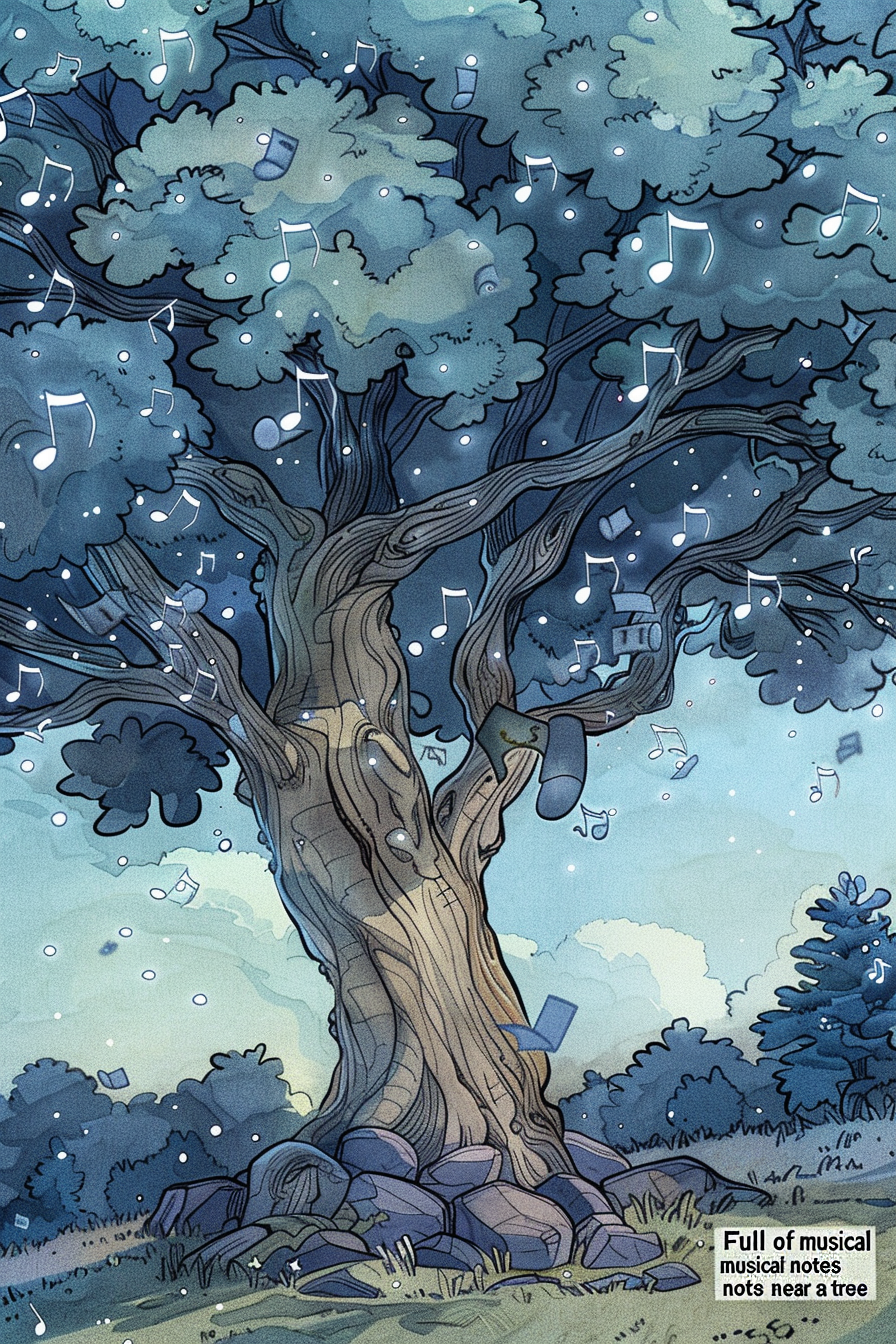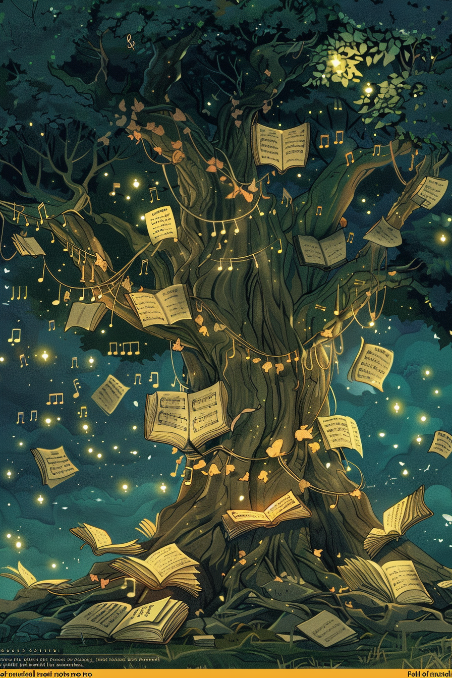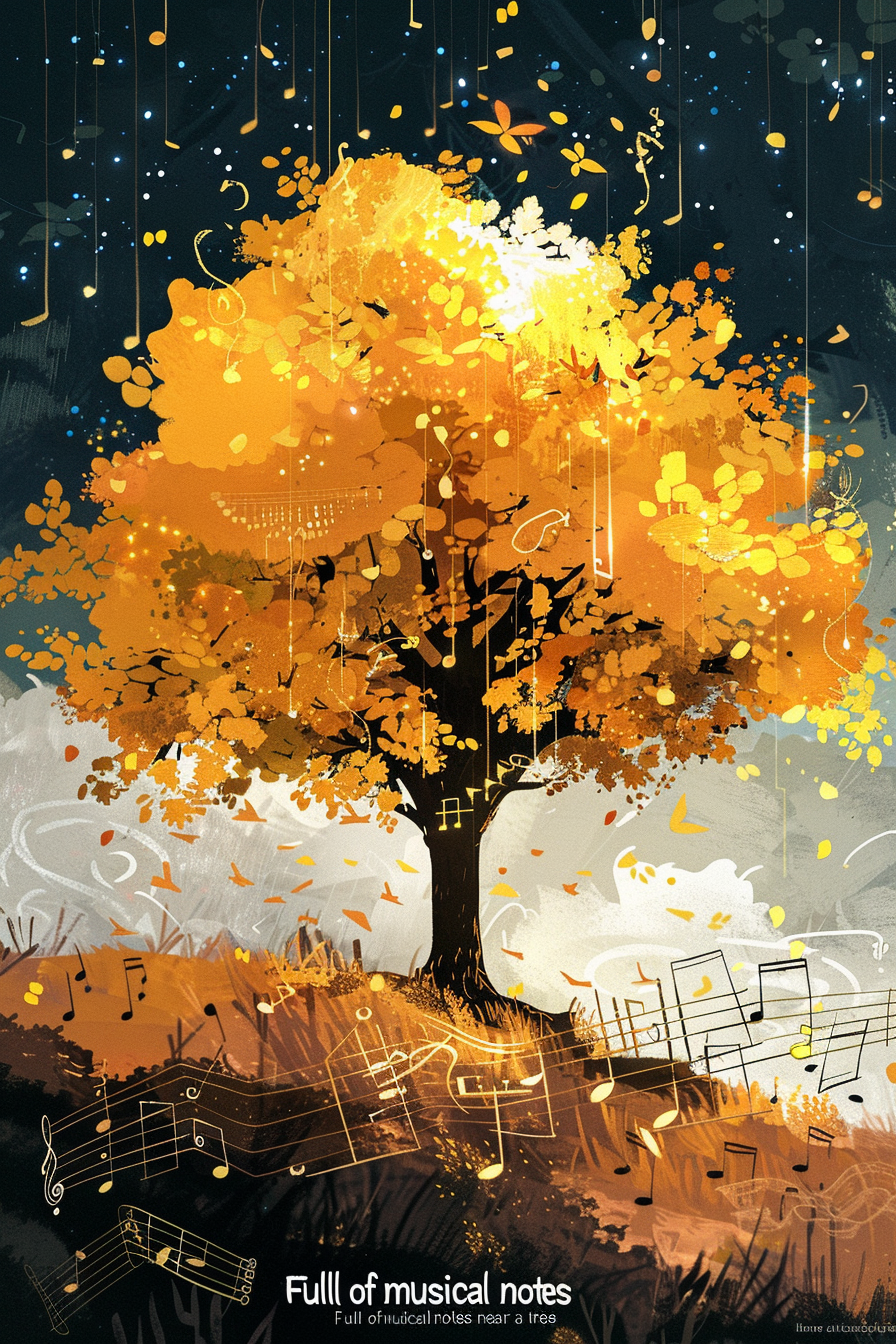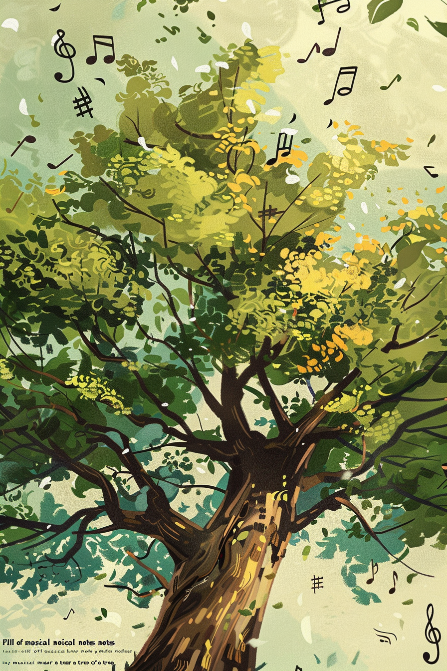 나무는 성장과 번영을, 노래는 기쁨과 조화를 상징합니다.
