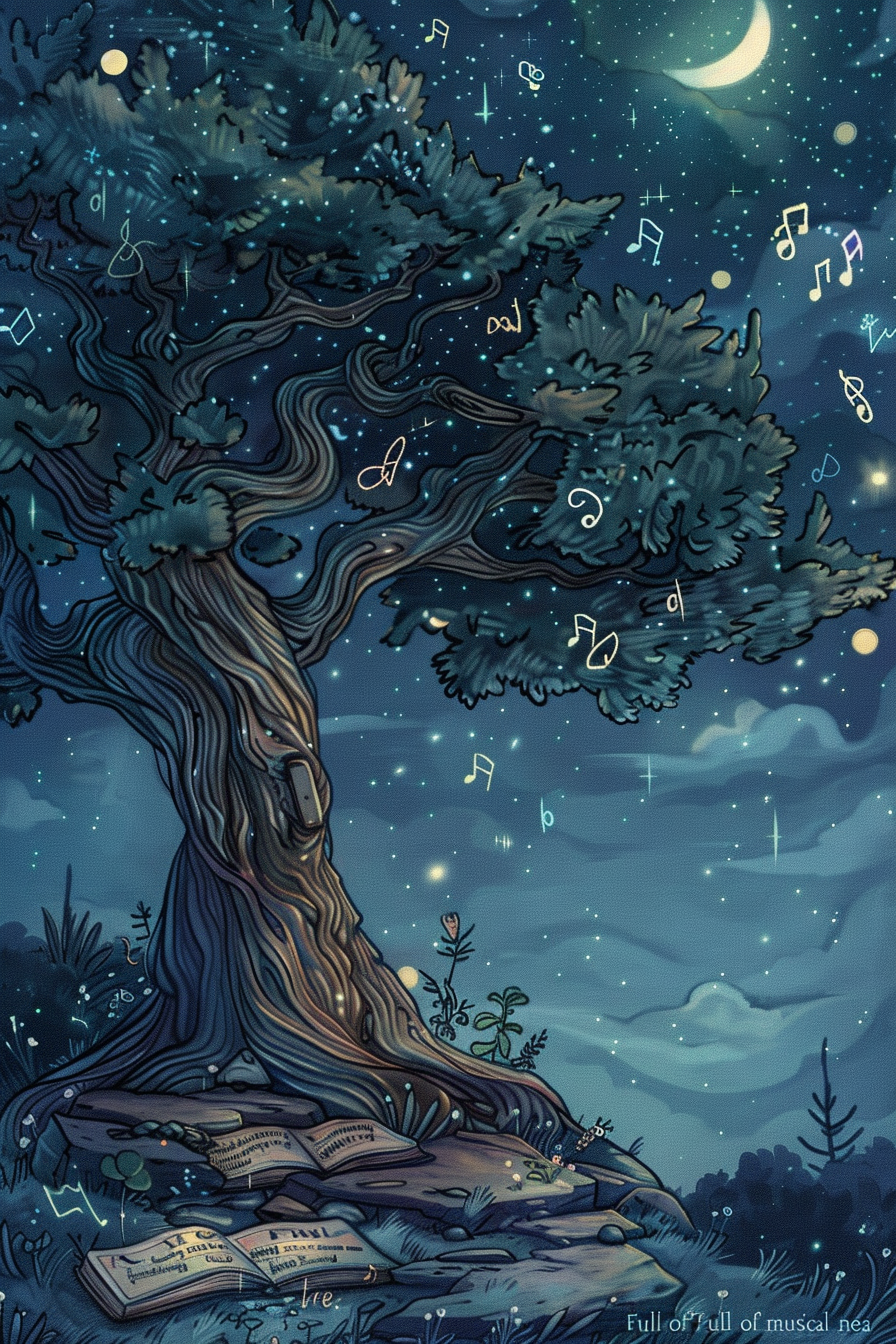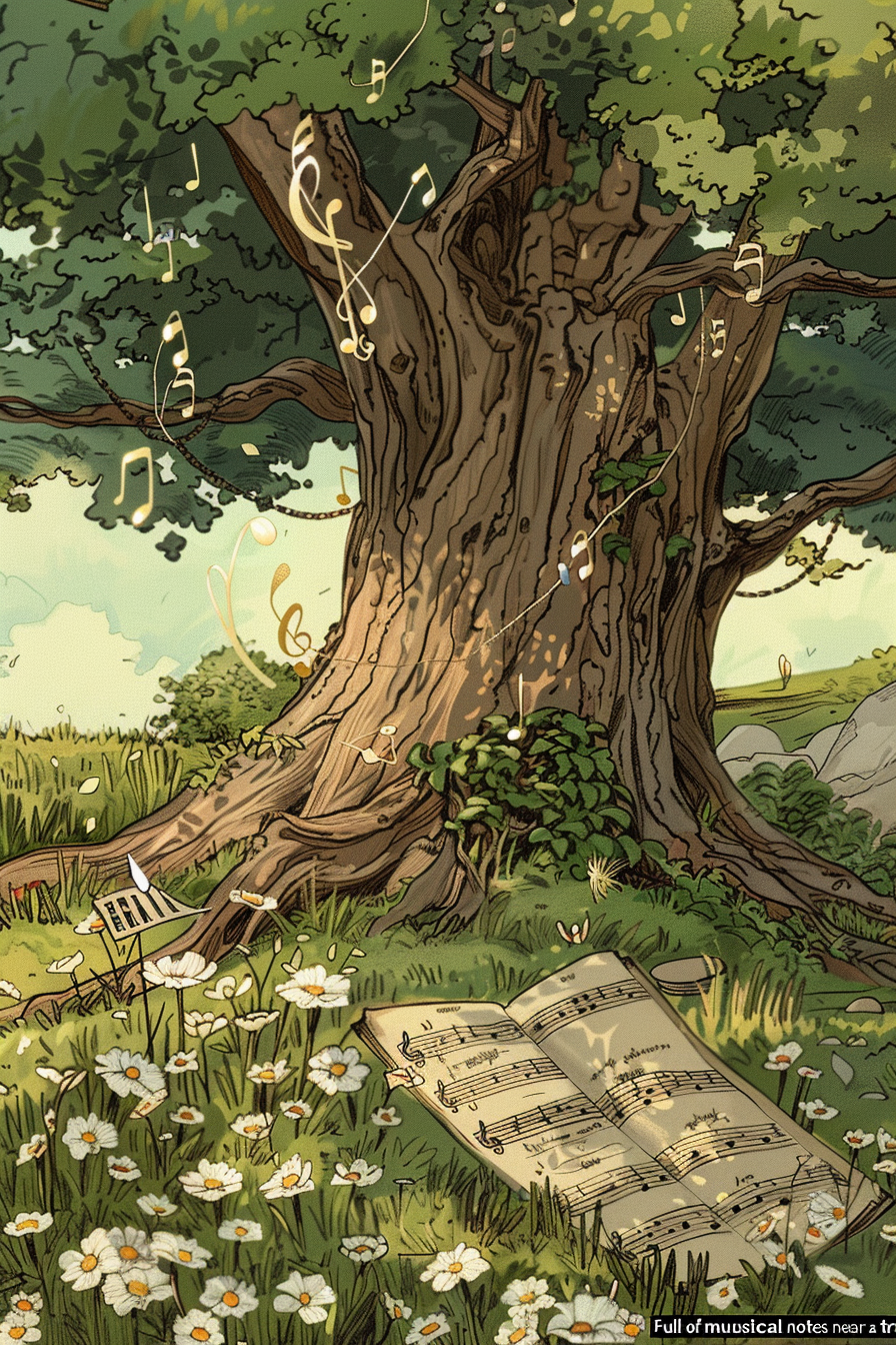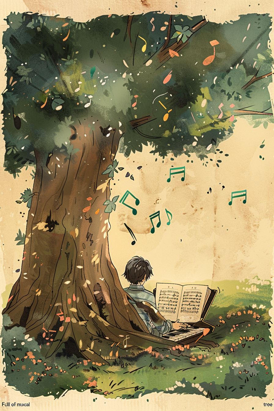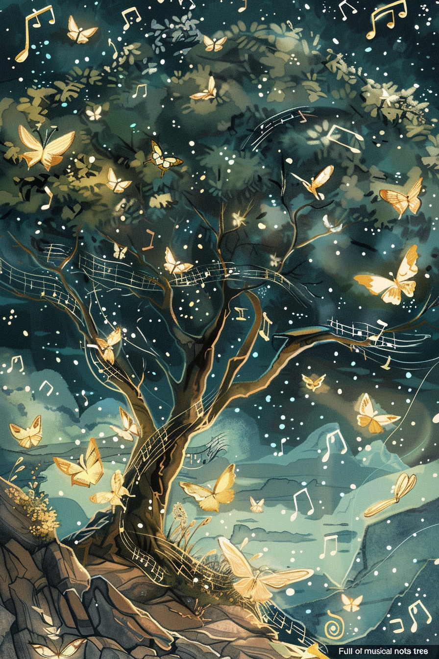 나무는 성장과 번영을, 노래는 기쁨과 조화를 상징합니다.