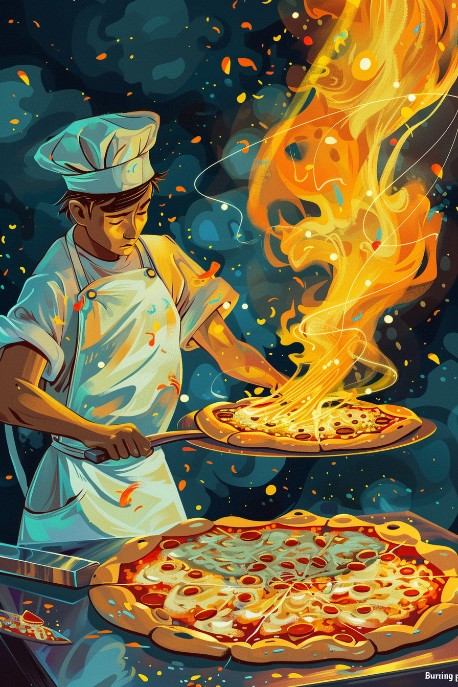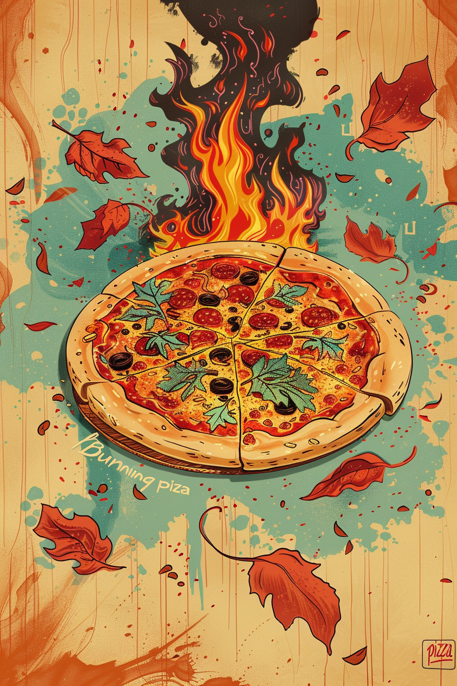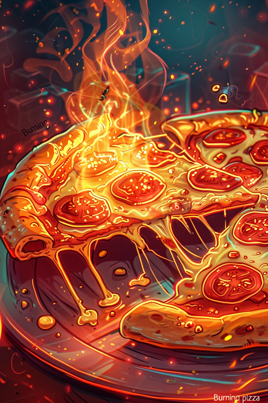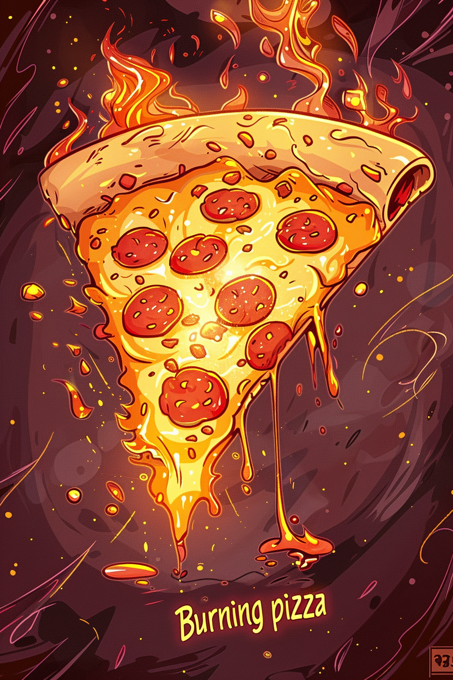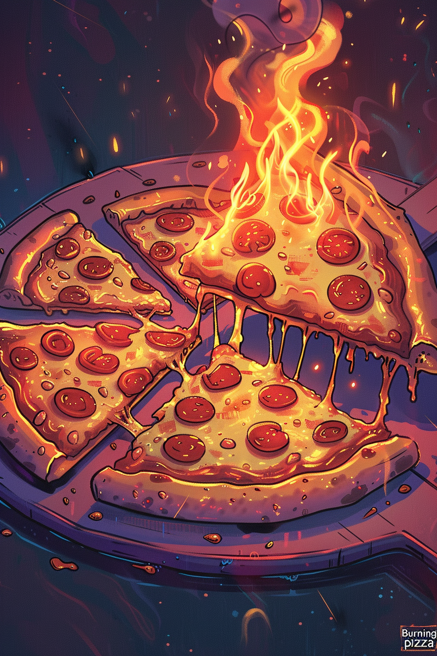 불타는 피자의 에너지를 담아 주변 사람들에게 열정을 전파하면 좋은 기운이 돌아옵니다.