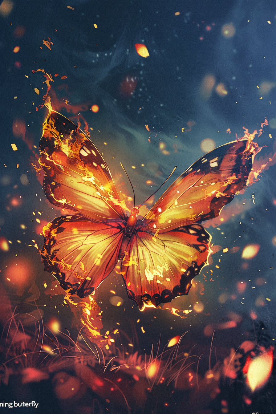나비는 변화를, 불꽃은 강력한 힘을 나타내며, 이 꿈은 당신이 금전적으로 큰 변화를 겪고, 새로운 기회를 맞이하게 될 것을 예고합니다.