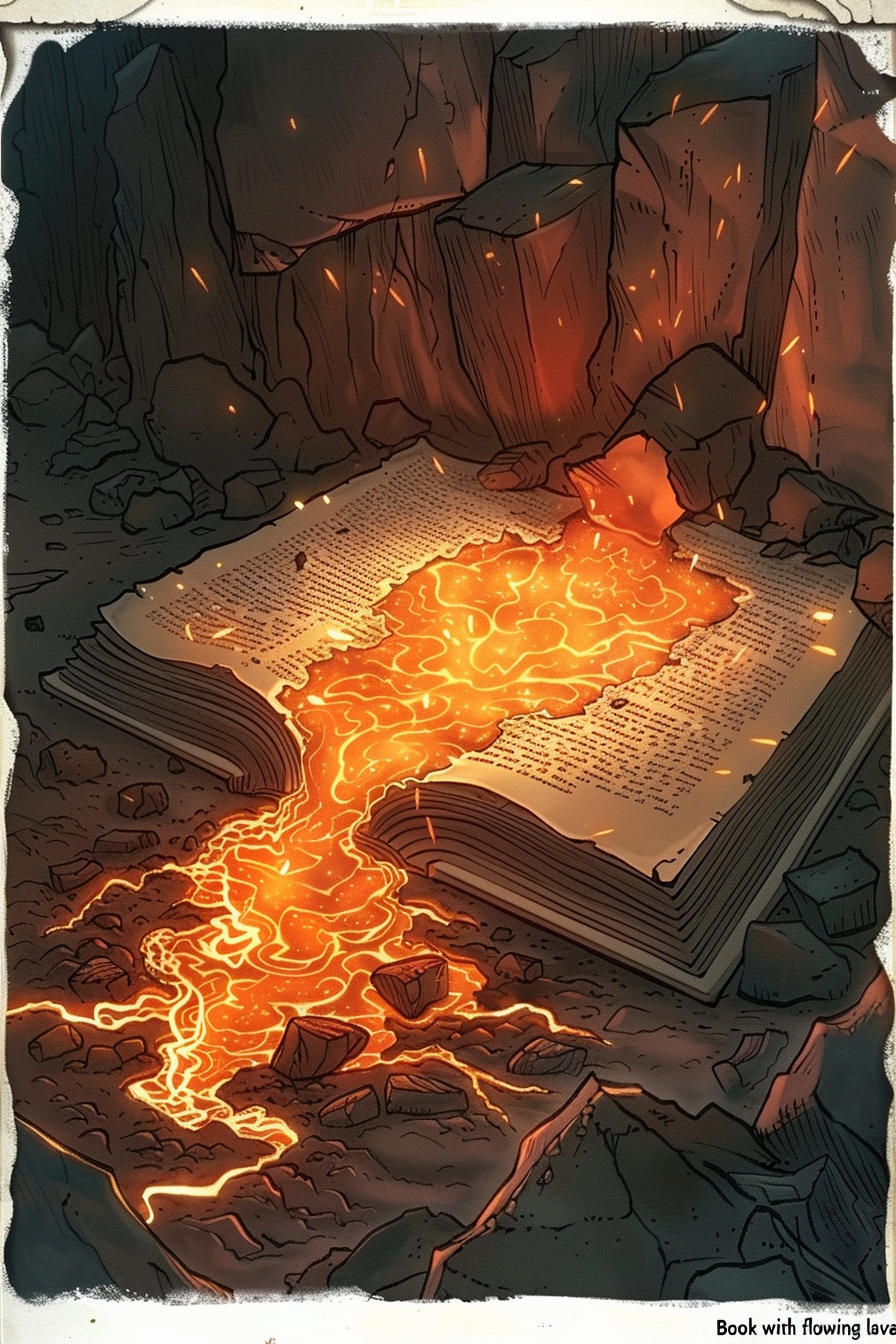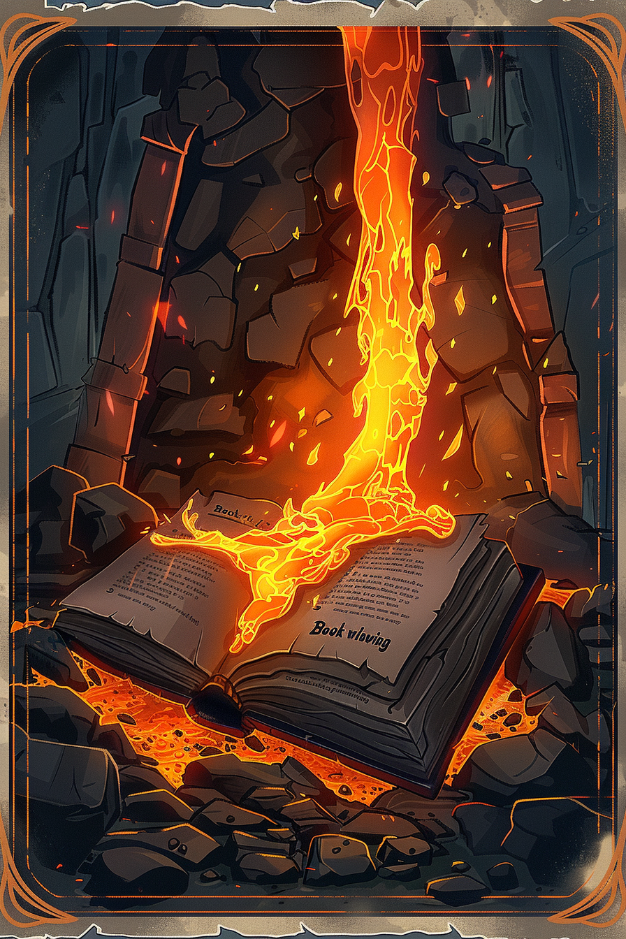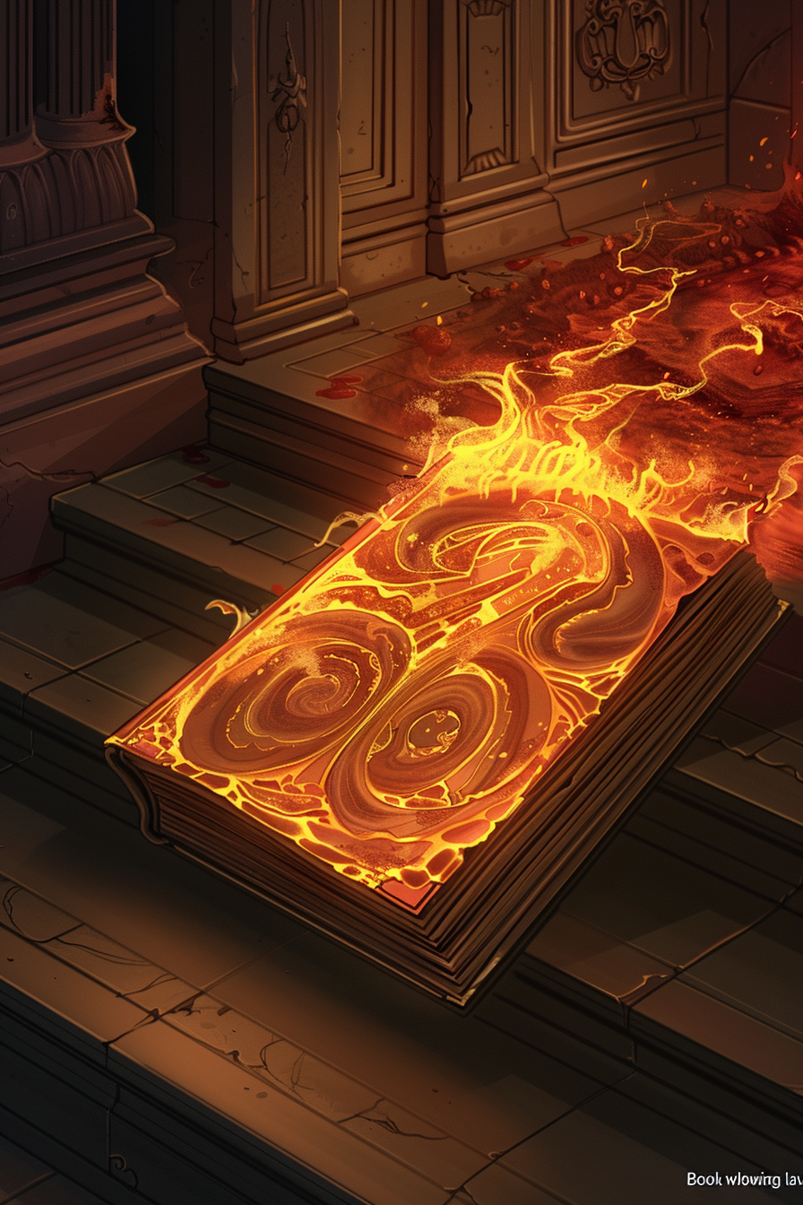 책은 지혜와 지식을 상징하고, 용암은 강력한 에너지와 변화를 나타냅니다.