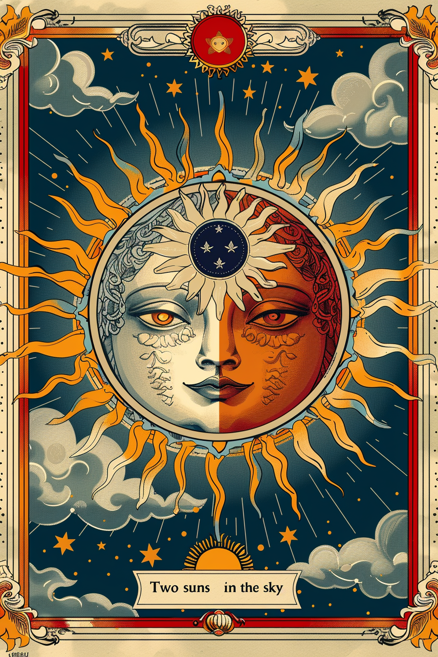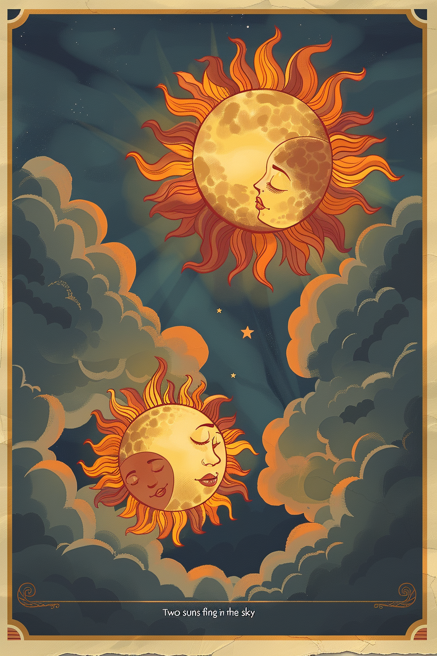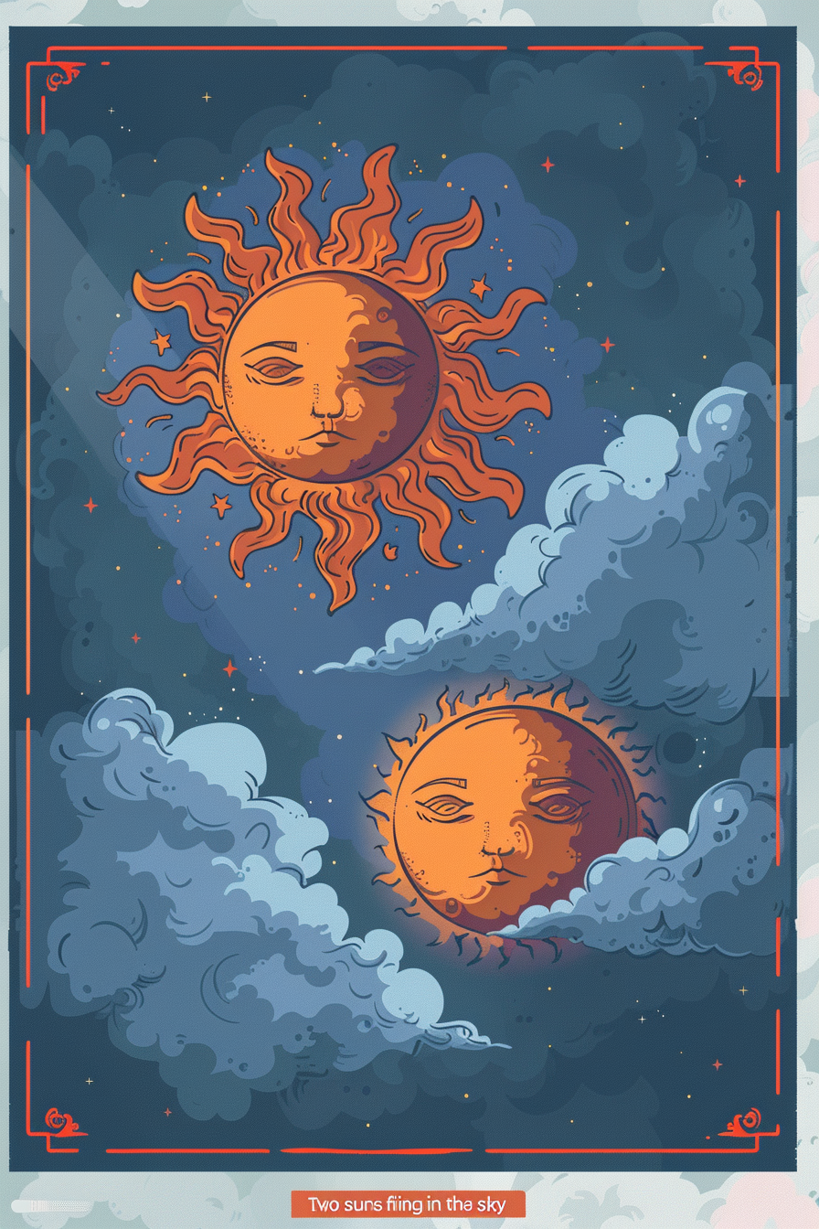 태양은 빛과 에너지를 상징하며, 두 개의 태양은 그 에너지가 두 배로 강력해짐을 의미합니다.