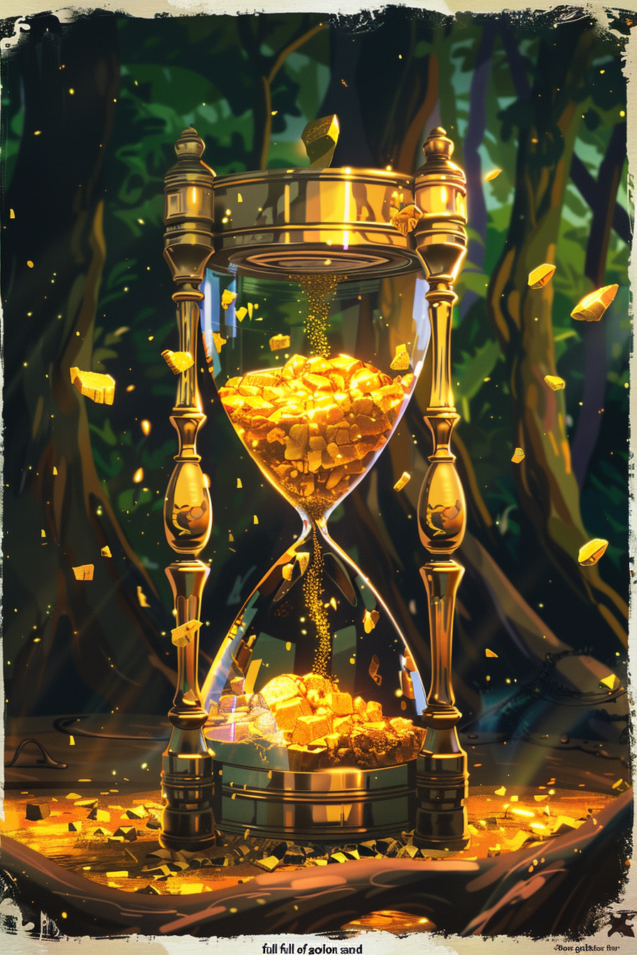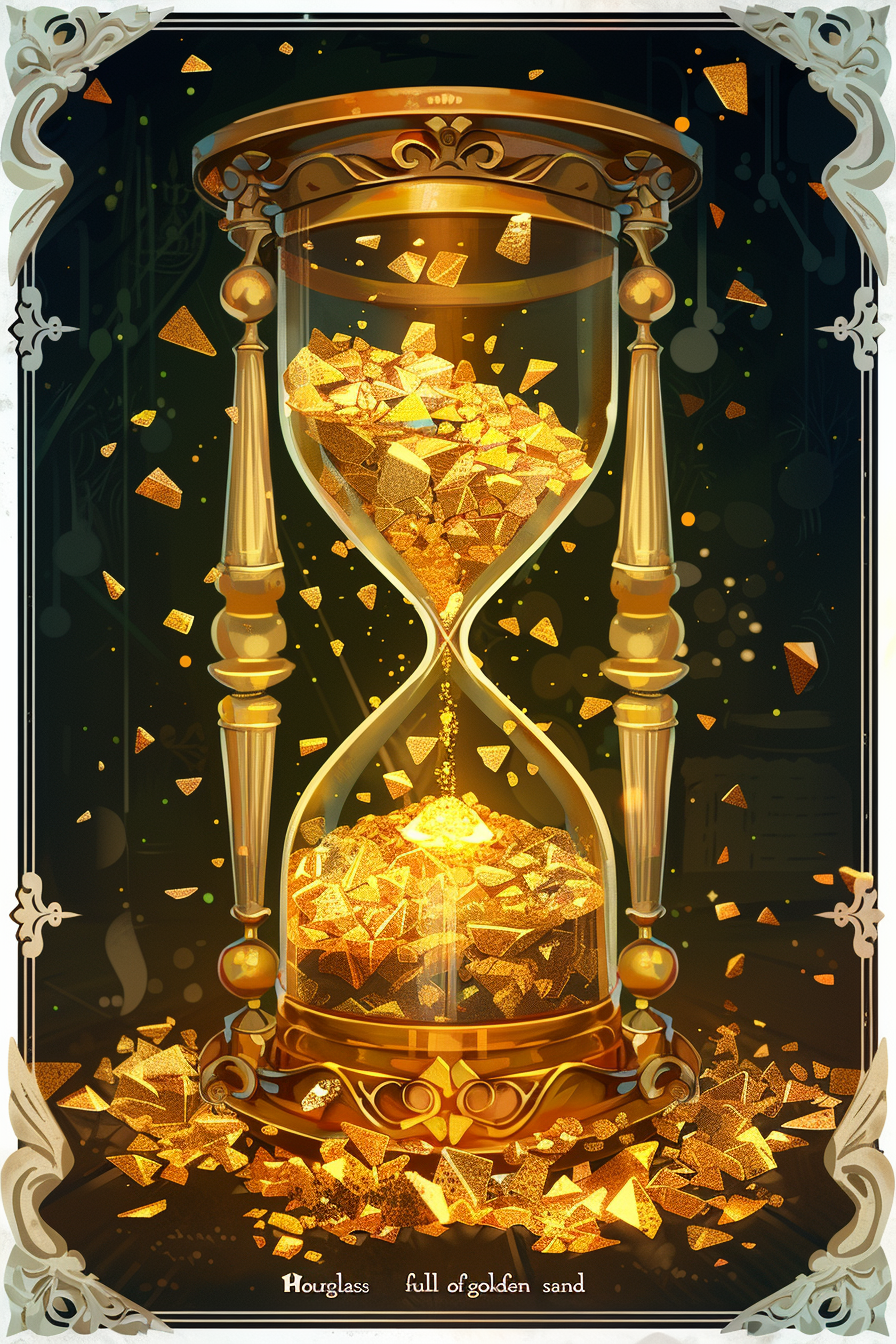 황금으로 빛나는 모래가 흘러내리는 순간, 당신의 재물운이 극대화됩니다.