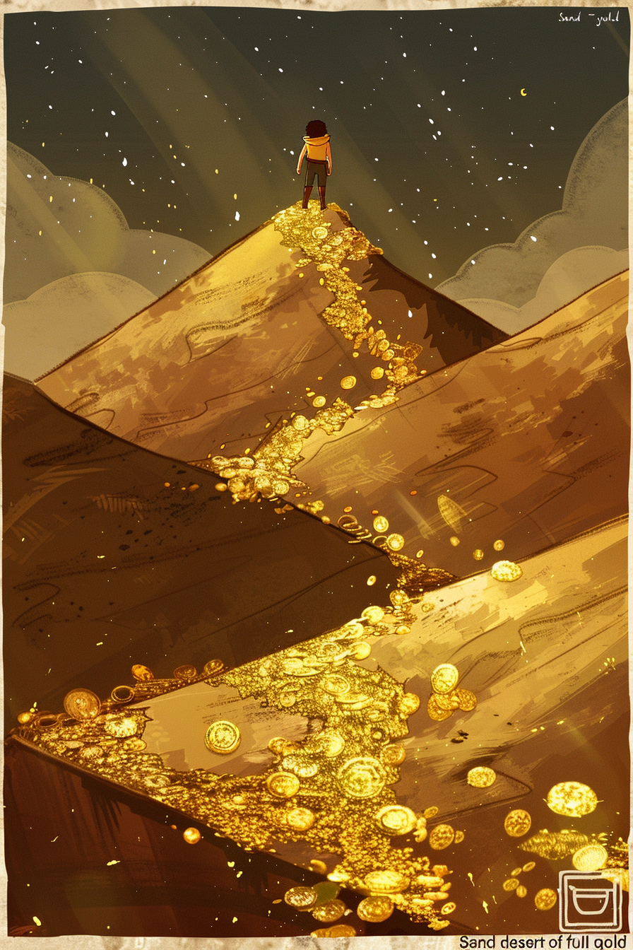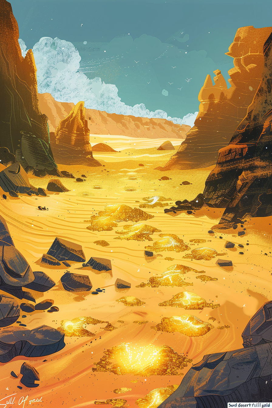 황금과 사막의 조합은 금전적인 기회가 널리 펼쳐져 있음을 의미합니다.
