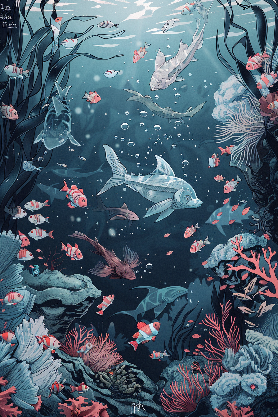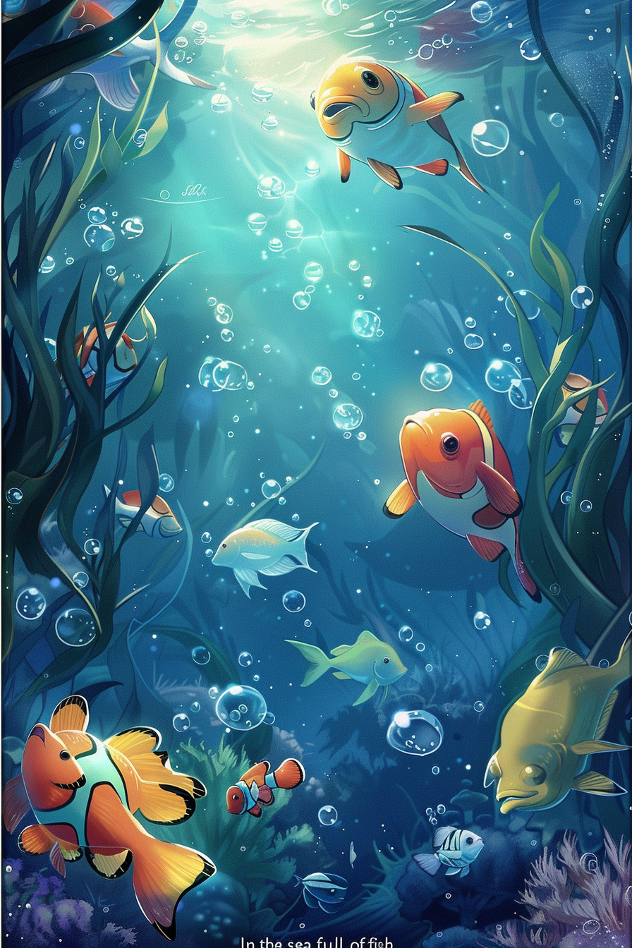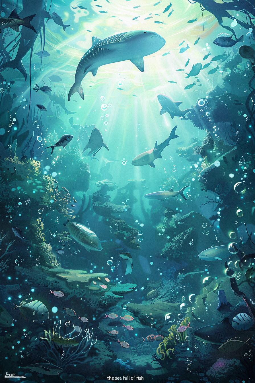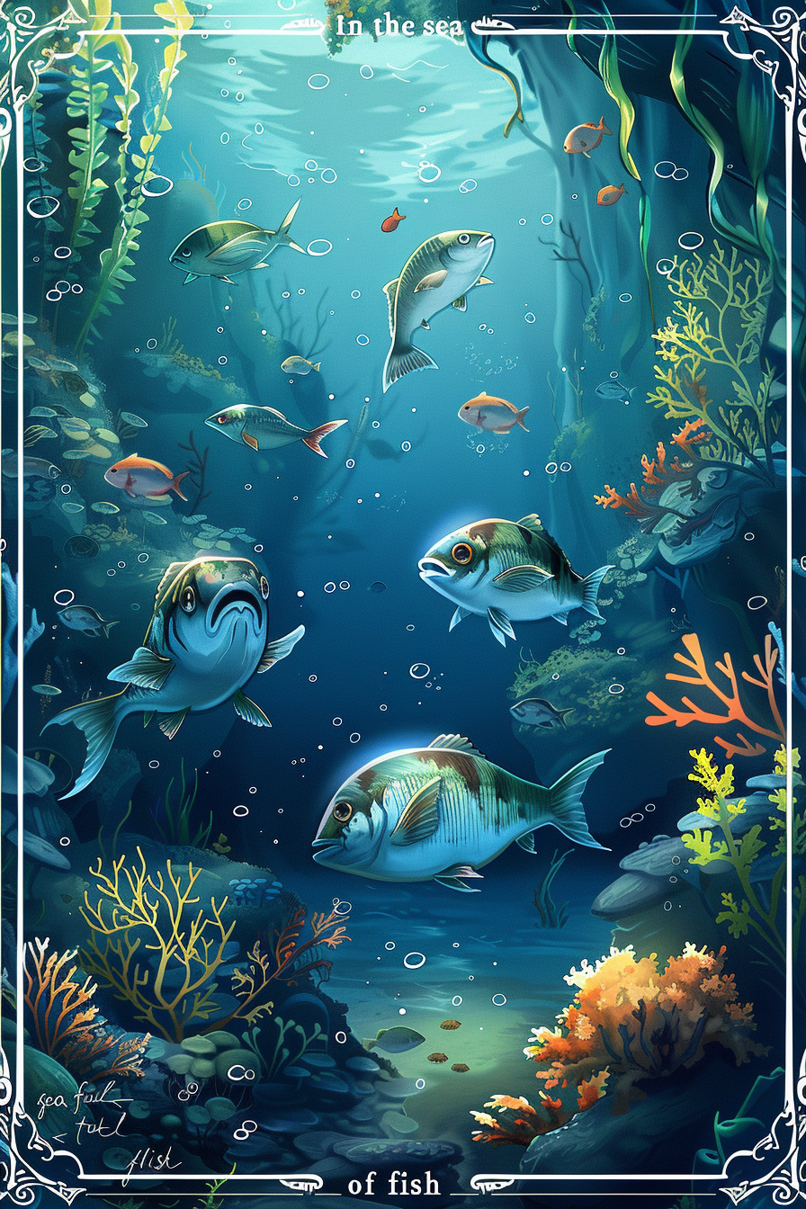 바다는 무한한 가능성과 잠재력을 상징하며, 물고기는 그 속에서 자라는 번영을 의미합니다.