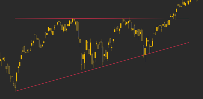 S&P 500의 지지선과 저항선 역할을 하는 추세선.