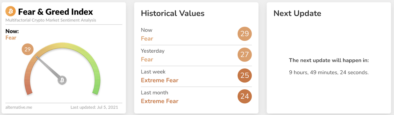 Crypto Fear and Greed Index는 암호화 시장 정서에 대해 0에서 100까지의 점수를 제공합니다. 주식 시장을 분석하기 위한 CNNMoney Fear and Greed Index를 기반으로 합니다.